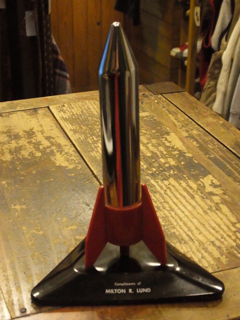 めっちゃチープな作りの1960年代のロケット型テーブルライターでした。